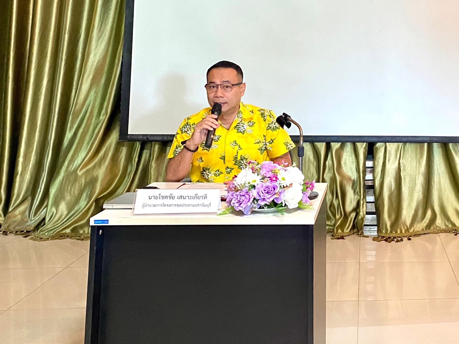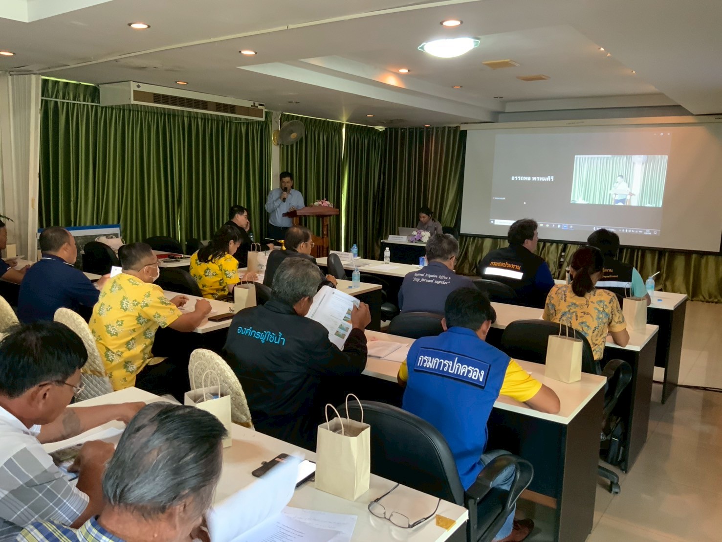กิจการร่วมค้า FCSPB JVและสำนักออกแบบวิศวกรรมและสถาปัตยกรรม กรมชลประทาน ได้จัดการประชุมปฐมนิเทศโครงการฯ โดยได้รับเกียรติจากนางสาวจุฑามาศ บัวเผื่อน นายอำเภอศรีมหาโพธิ เป็นประธานเปิดการประชุม นายศักดิ์ชาย เทพคำอ้าย ผู้อำนวยการส่วนมาตรฐานการออกแบบ กล่าวรายงานการประชุม โดยมีวัตถุประสงค์เพื่อประชาสัมพันธ์โครงการ ชี้แจงขอบเขตของงาน และรับฟังความคิดเห็น ข้อเสนอแนะจากหน่วยงานราชการที่เกี่ยวข้อง องค์กรปกครองส่วนท้องถิ่น คณะกรรมการลุ่มน้ำบางปะกง องค์กรพัฒนาเอกชน ผู้นำชุมชน และประชาชนที่สนใจโครงการ โดยมีผู้เข้าร่วมประชุมปฐมนิเทศโครงการ จำนวน 94 คน
