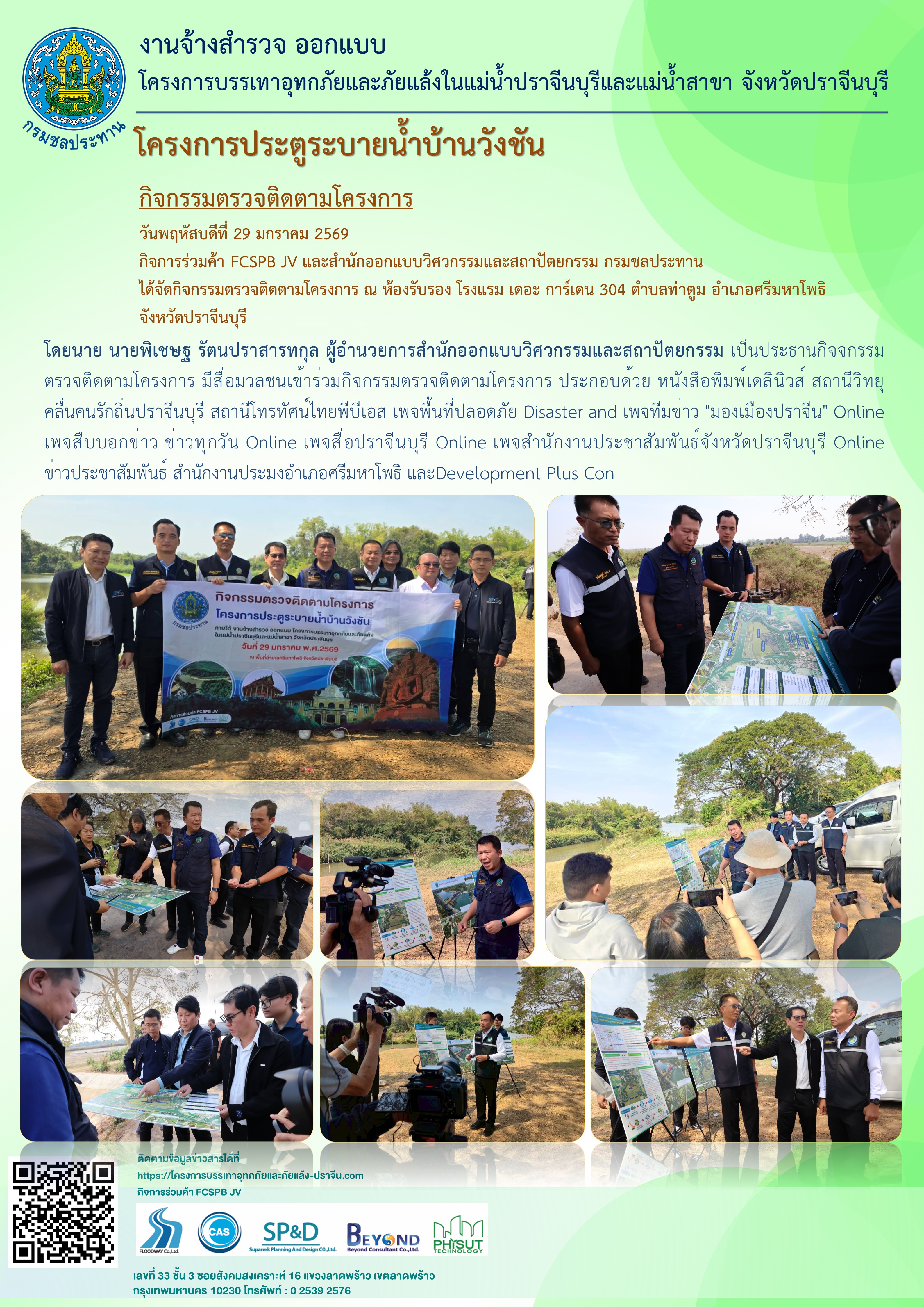 ได้จัดกิจกรรมตรวจติดตาม ณ ห้องรับรอง โรงแรม เดอะ การ์เดน 304 ตำบลท่าตูม อำเภอศรีมหาโพริ จังหวัดปราจีนบุรี โดยได้รับเกียรติจาก นายพิเชษฐ รัตนปราสาทกุล ผู้อำนวยการสำนักออกแบบวิศวกรรมและสถาปัตยกรรม เป็นประธานกิจกรรมตรวจติดตามโครงการฯมีสื่อมวลชนเข้าร่วมกิจกรรมตรวจติดตามโครงการฯ